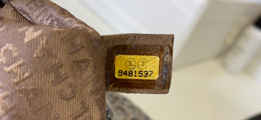 Ältere Burberry Taschen haben einen eingestanzten Code auf der Rückseite des „MADE IN ITALY“-Lederetiketts.