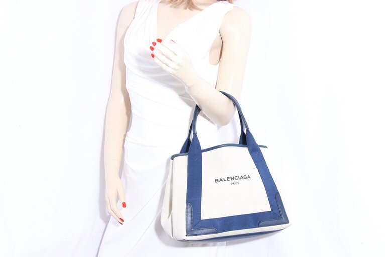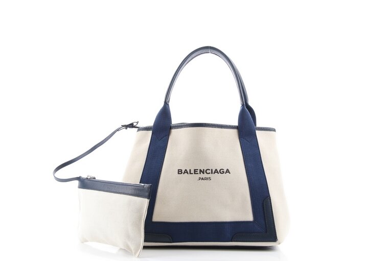 Balenciaga Handtasche Tote Bag Beige Textil Navy Leder mit Pochette 339933