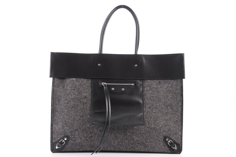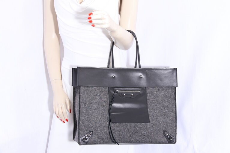 Balenciaga Razor Shopper Wolle Leder Schwarz Grau 359482
