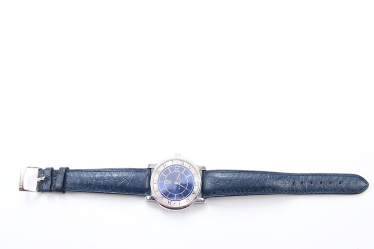 Bulgari Armbanduhr Solotempo Silberfarben mit blauem Lederarmband