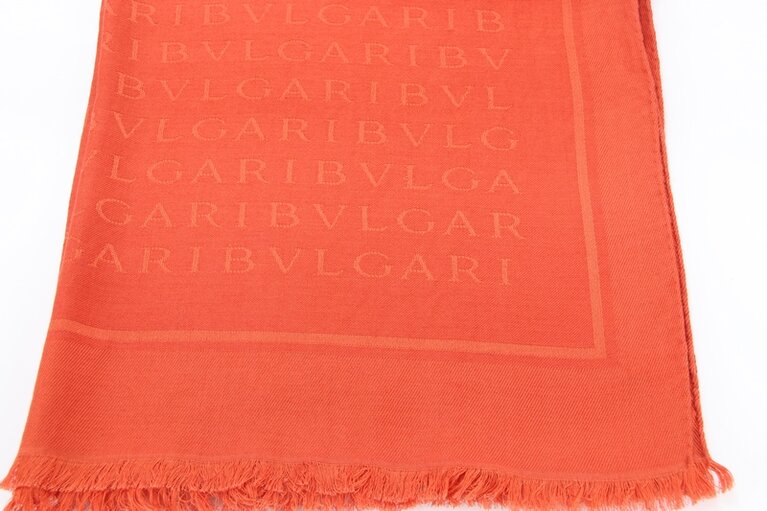 Edle und warme Seide-Wolle Stola mit eingewobenem Bvlgari-Muster.