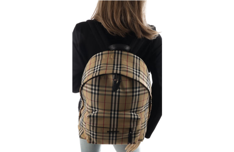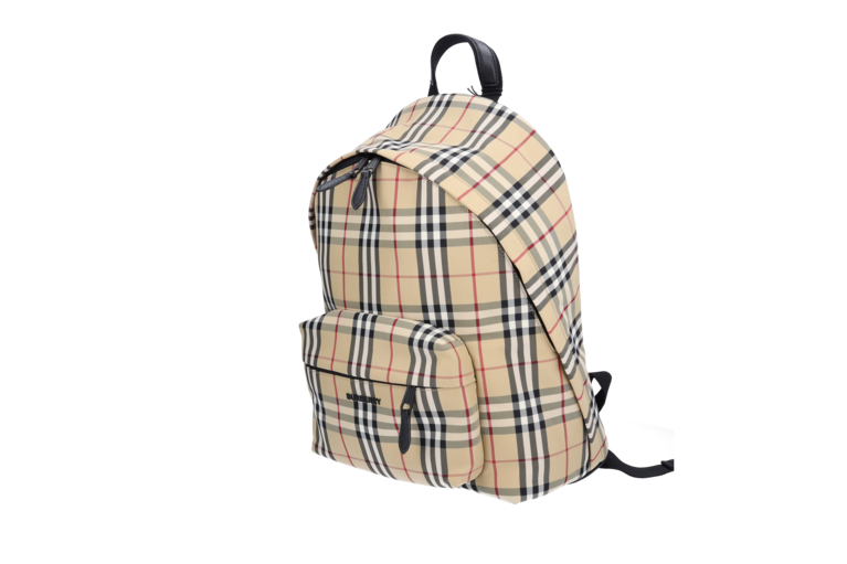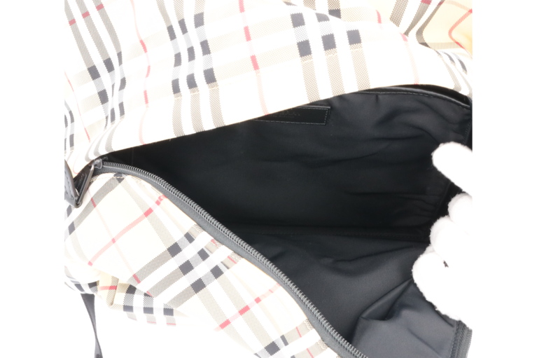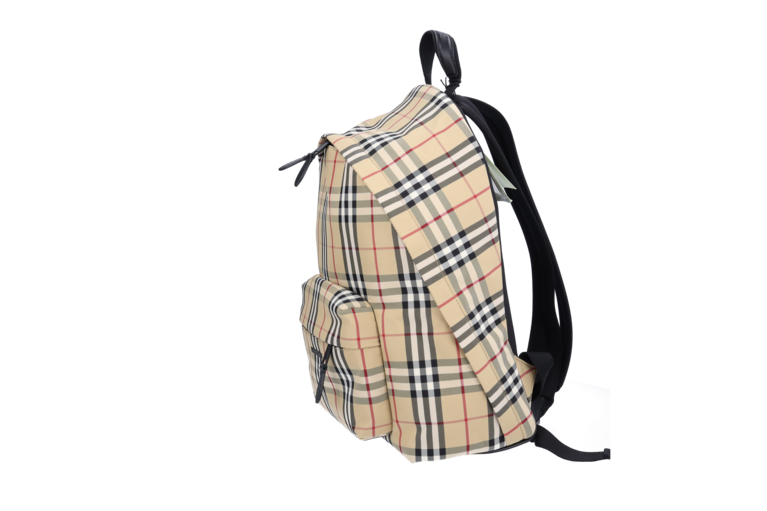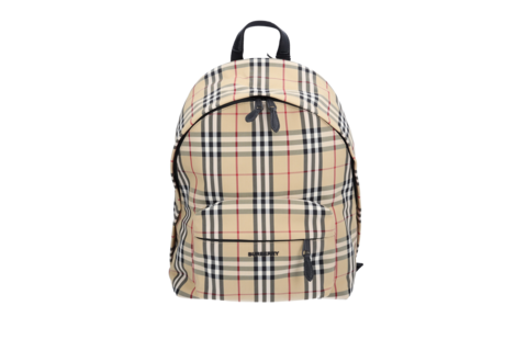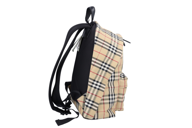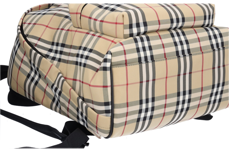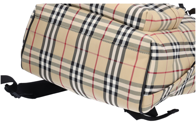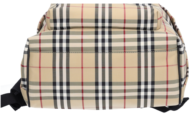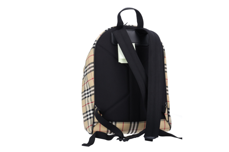 Burberry Abbeydale Rucksack Giant Check Beige Nylon Schwarz Leder 80697491 Unisex
