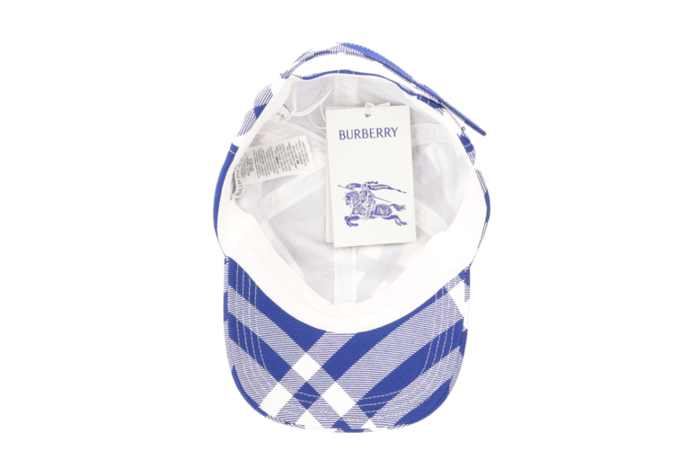Dieser Burberry Cap im Check Blau und Weiss verleiht umgehend Sommer-Vibes.