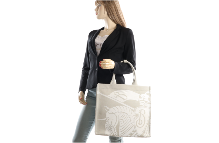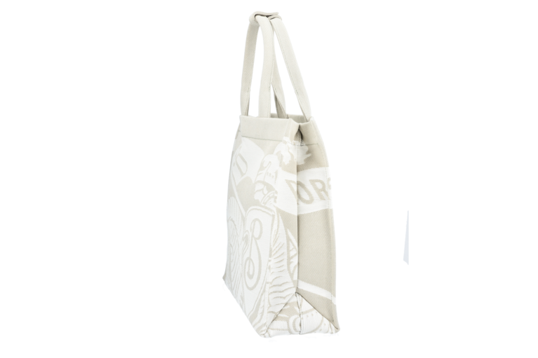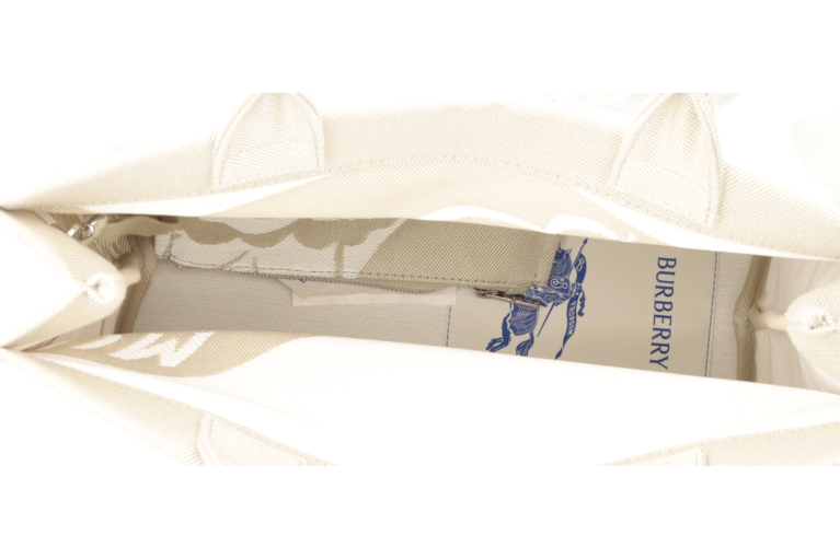 Die Burberry EKD Knight Tote in beigefarbenem Denim vereint lässige Eleganz mit praktischer Funktionalität. Der geräumige Shopper bietet ausreichend Platz für den Alltag, während die herausnehmbare Pochette sich im Handumdrehen in eine stilvolle Clutch verwandeln lässt. Abgerundet wird das Design durch das ikonische Equestrian Knight Design (EKD), das für Burberrys Tradition und Handwerkskunst steht.