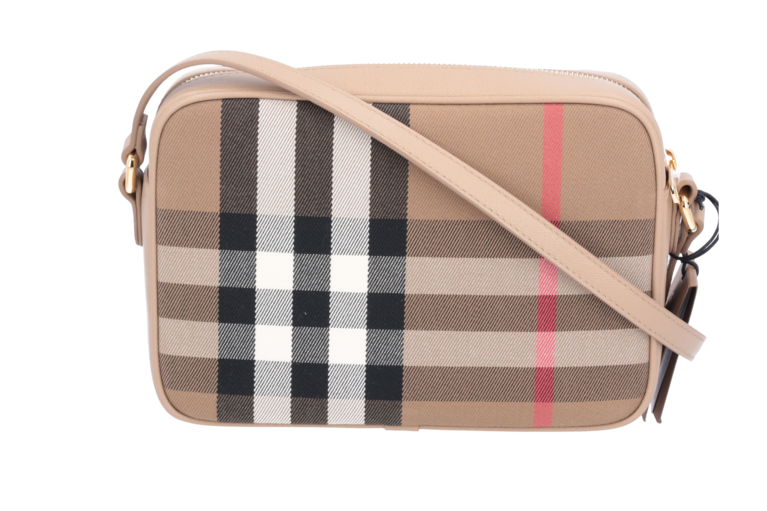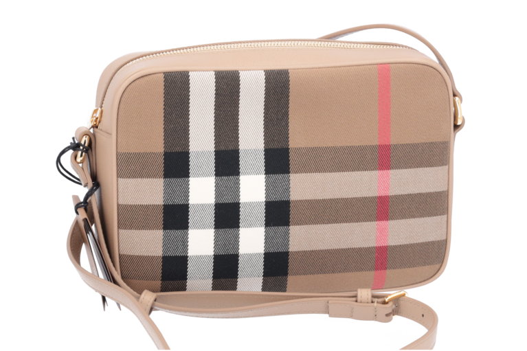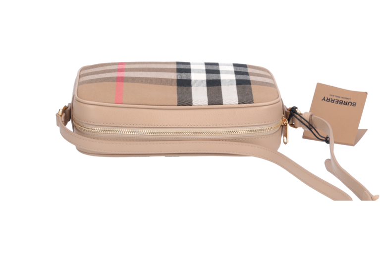 Burberry Large Camera Bag Check Braun und Leder Chestnut Beige 80844991