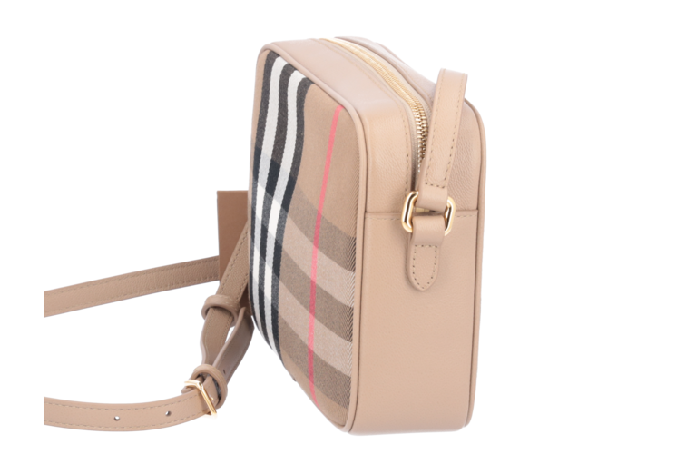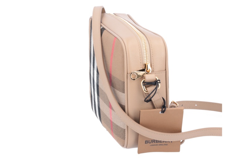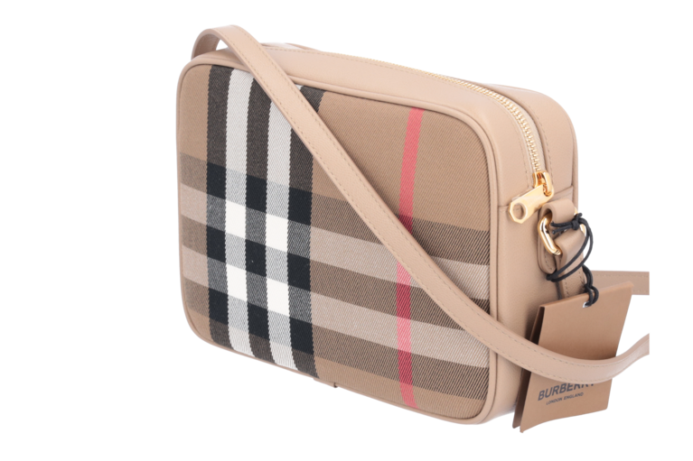Burberry (bis 1999: Burberrys genannt) ist eine 1856 von Thomas Burberry ins Leben gerufene britische Modemarke, die bis heute besonders für ihr markenrechtlich geschütztes Check- Muster (Karo) international bekannt ist. Die vorliegende Camera Bag eignet sich als Schultertasche oder zum dioagonal am Körper tragen (Crossbody).