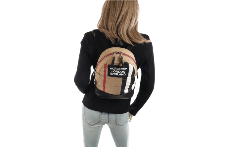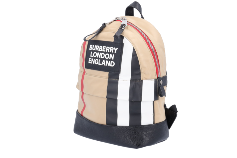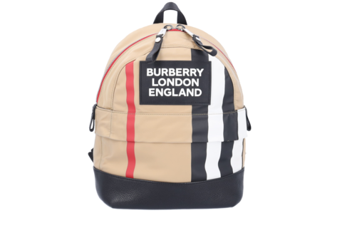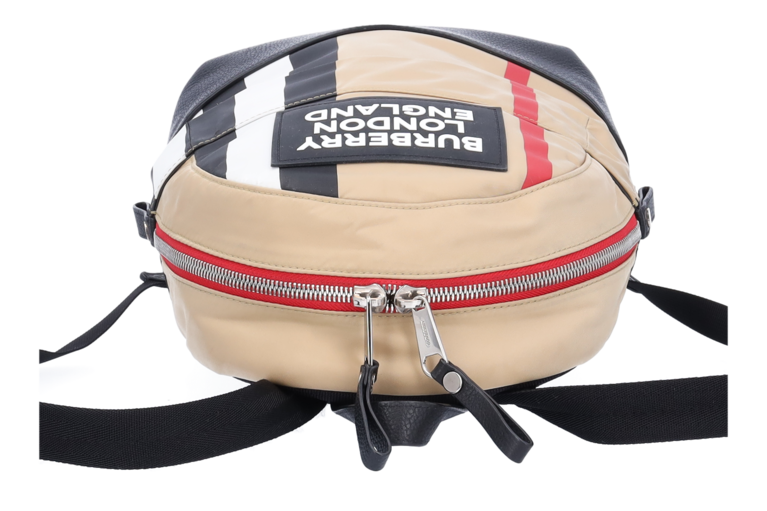 Burberry Logo RucksackPM Giant Check Beige Nylon Schwarz Leder Unisex