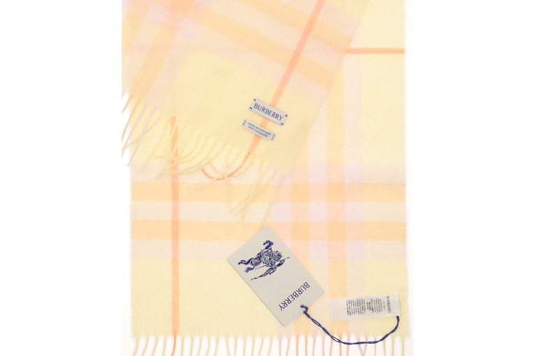 Luxuriöser Burberry Schal im Giant Check helle Gelb aus feinem Cashmere/Kaschmir. 168 x 30 cm, Unisex – stilvoller Klassiker für Sie und Ihn.