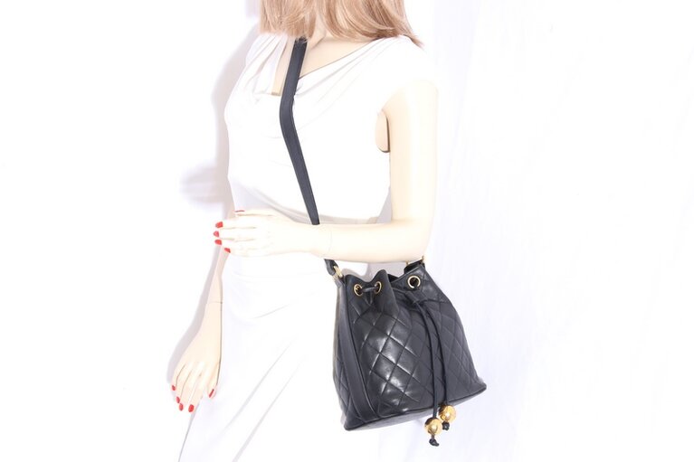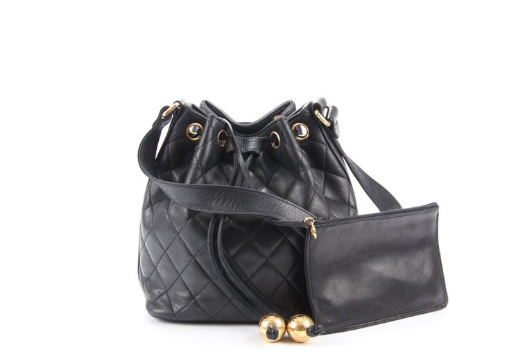 Chanel Beuteltasche mit Pochette Schwarz Matelassé Lammleder