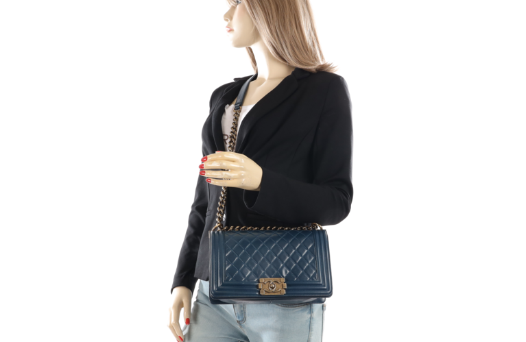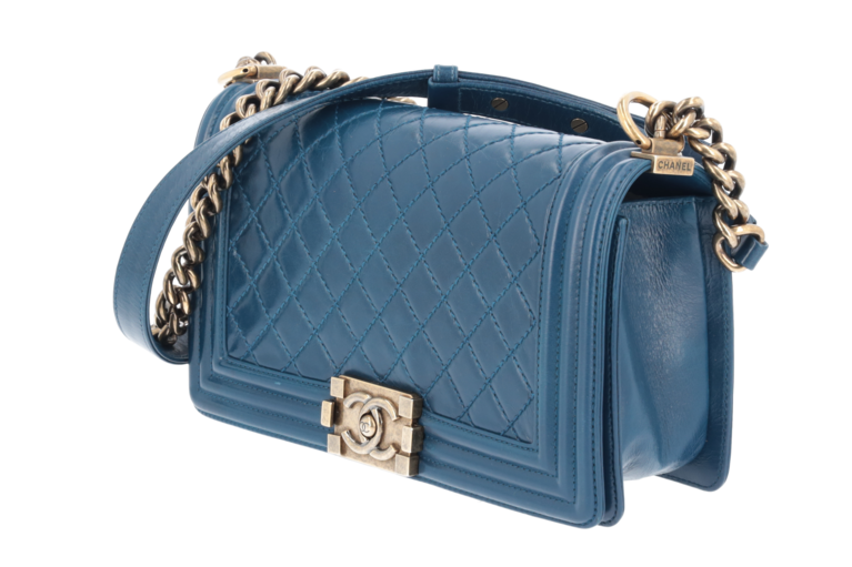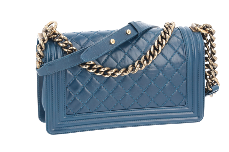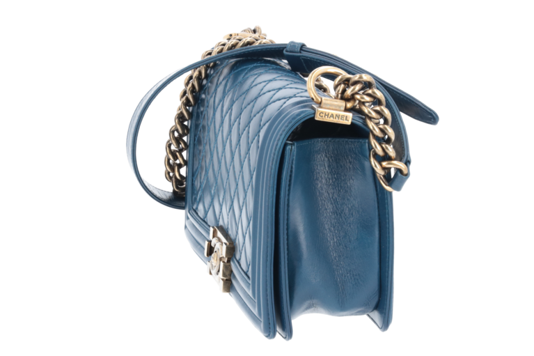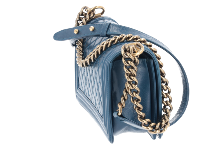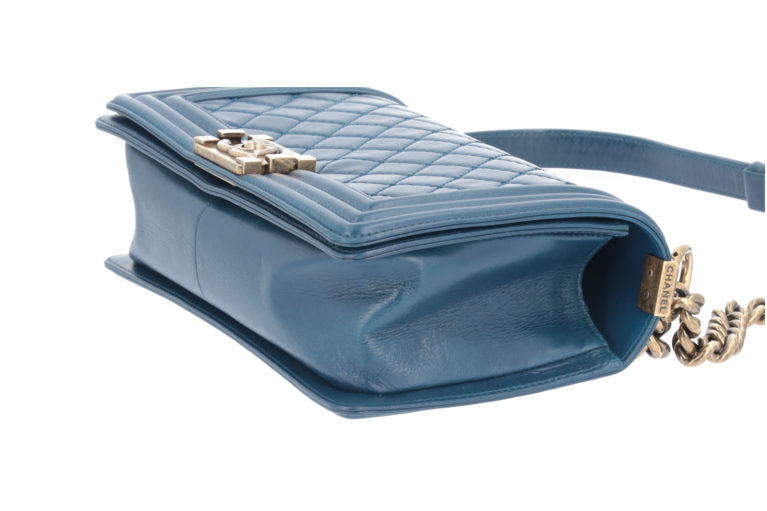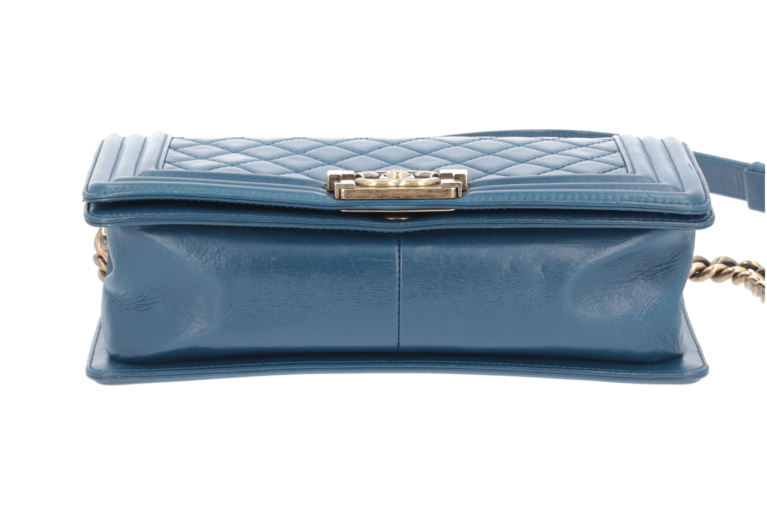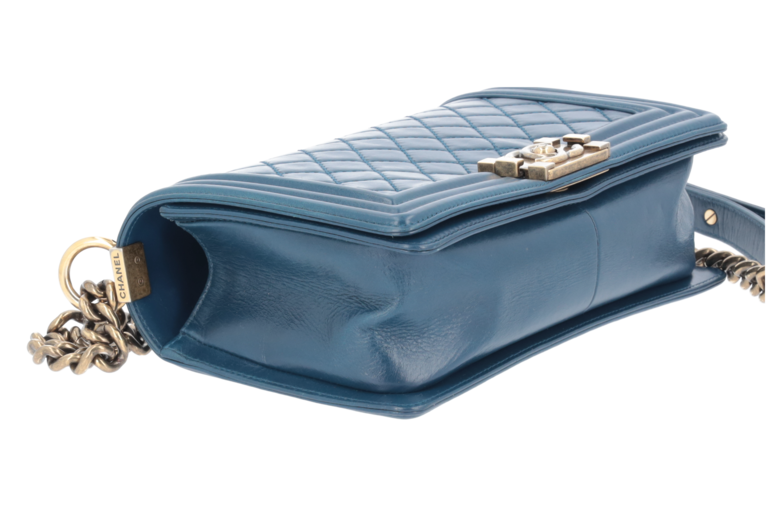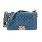 Chanel Boy 25 Medium Blau Goldfarbene Beschläge