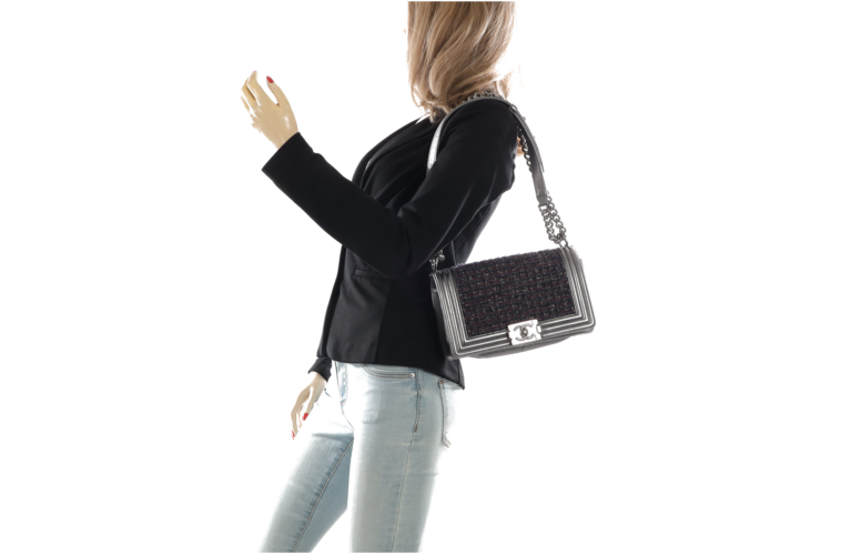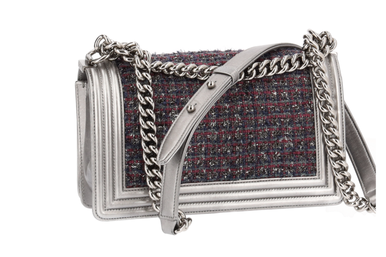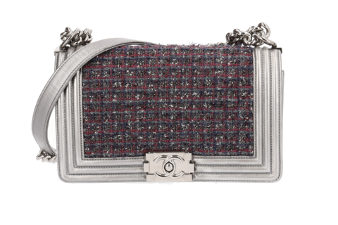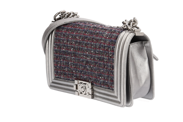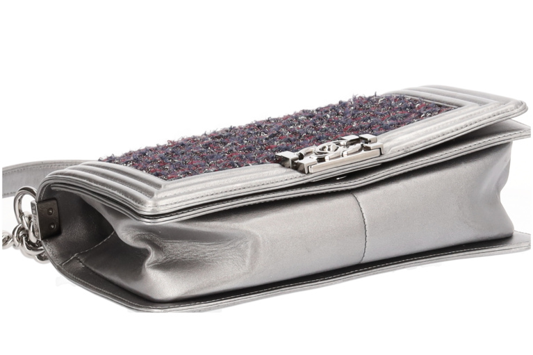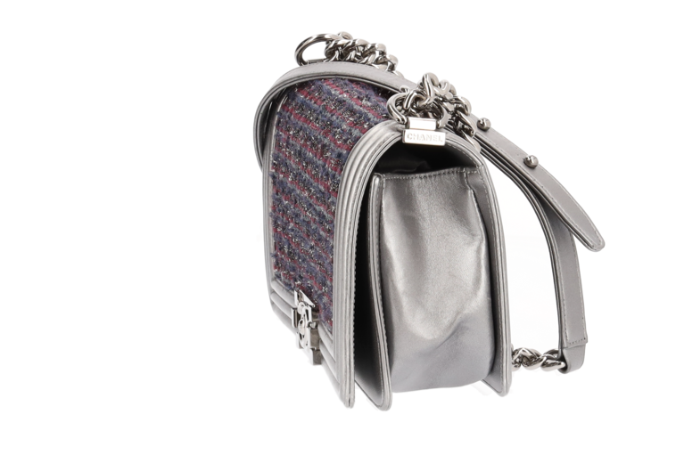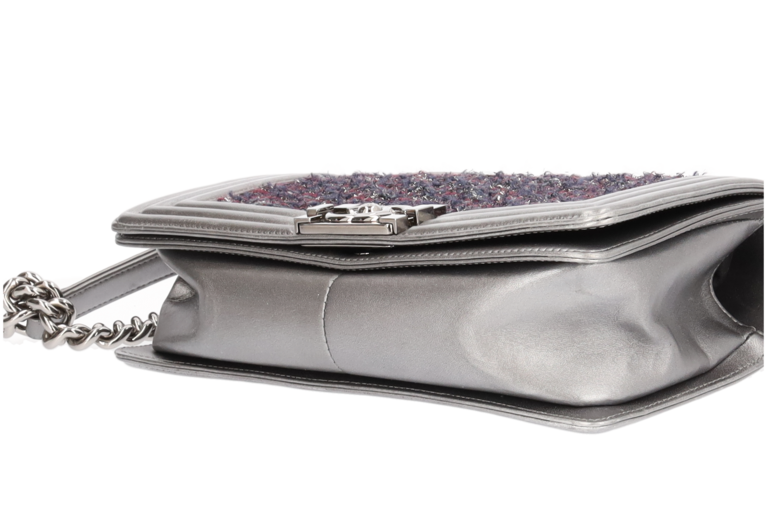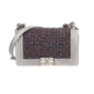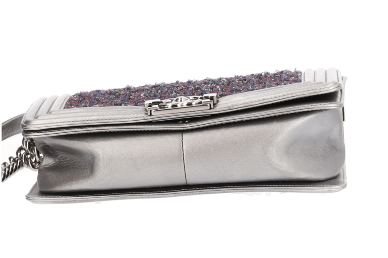 Chanel Boy 25 Medium Grau Tweed und Leder mit Ruthenium Beschläge