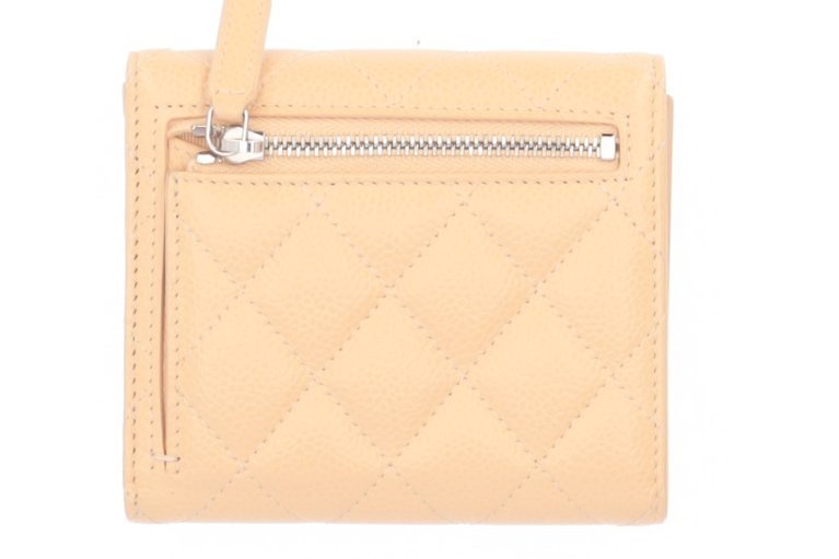 Chanel Classic Kompakt Portemonnaie Trifold Beige Caviar Leder Matelassé