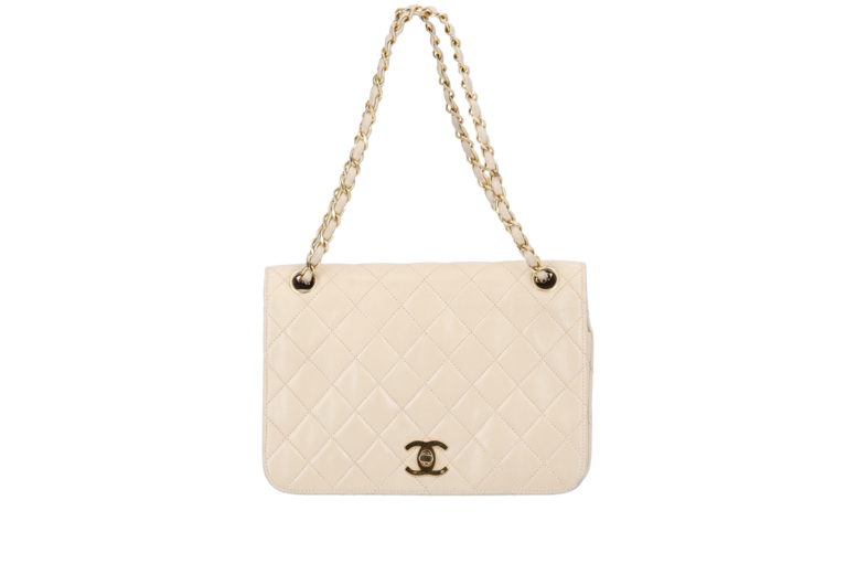 Chanel Classic Mini Single Flap Ketten Schultertasche Elfenbein Beige Matelassé Leder