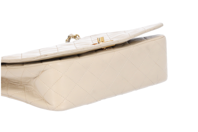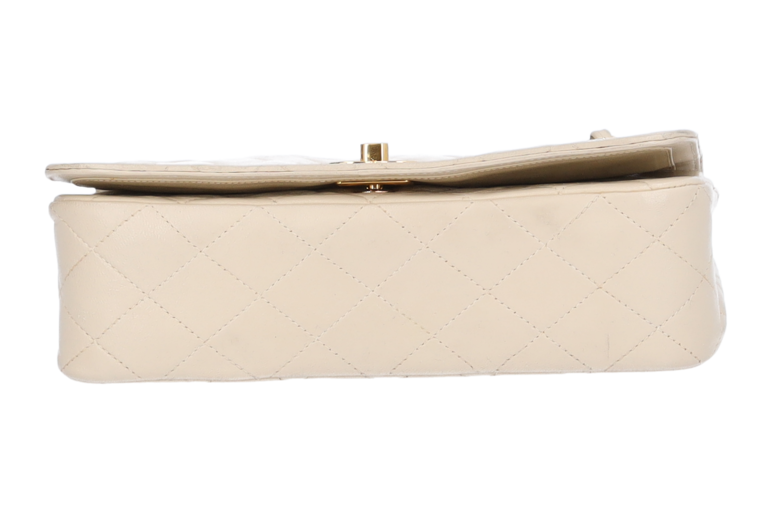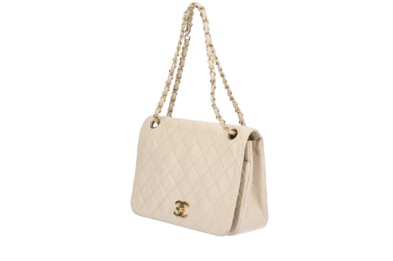 Chanel Classic Small Single Flap Ketten Schultertasche Elfenbein Beige Matelassé Leder