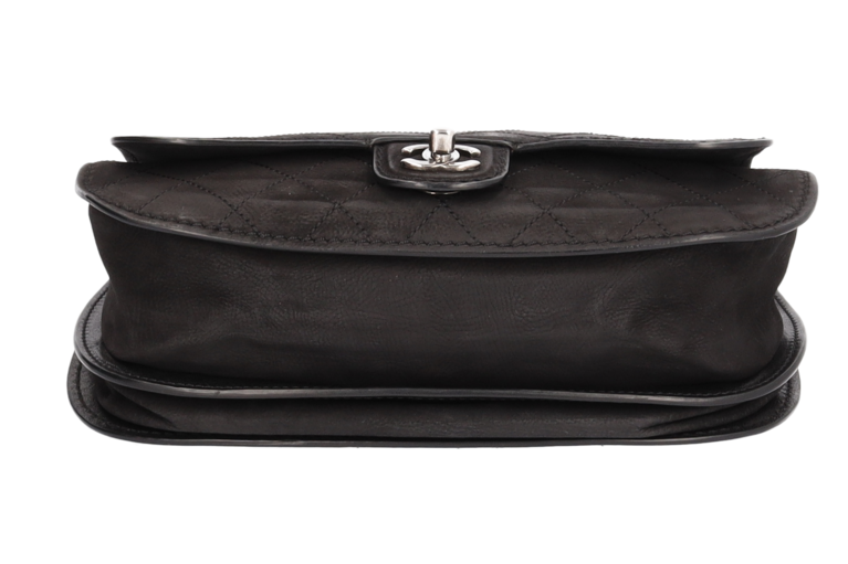 Chanel Coco Twin Double Saddle Bag Schwarz Matelassé Velours Leder