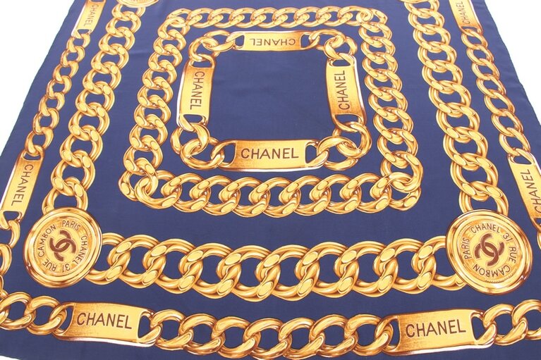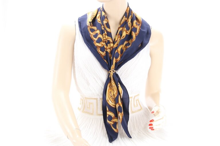 Chanel Foulard Carré CC Dunkelblau Gold Seide