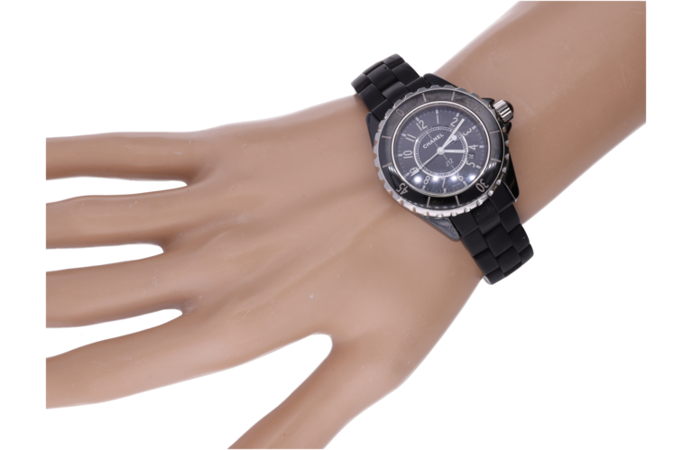 Chanel J12 M Quarzuhr mit Keramik Gehäuse schwarzem Zifferblatt und einem Armband aus Keramik 36mm
