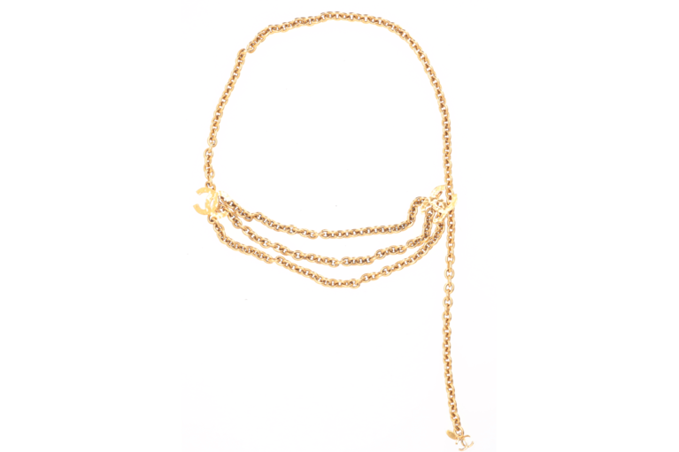 Wunderschöner, edler Gürtel aus dem Haus Chanel mit der typischen Kette und Medaillon-Anhänger.