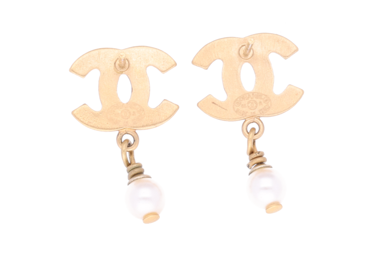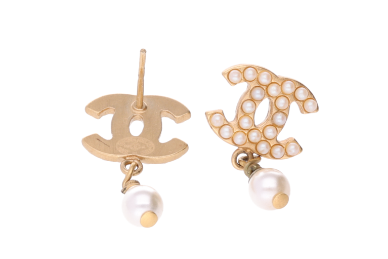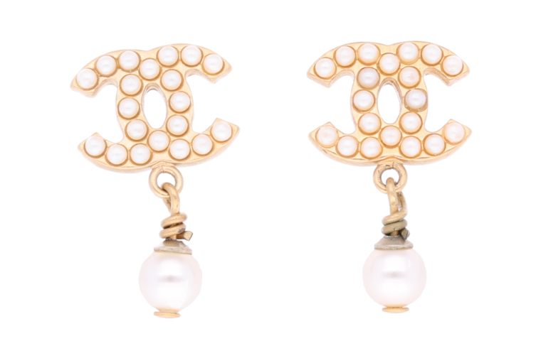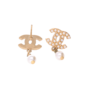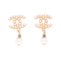 Chanel Ohrstecker CC Goldfarben mit kleinen Perlen und hängender Perle