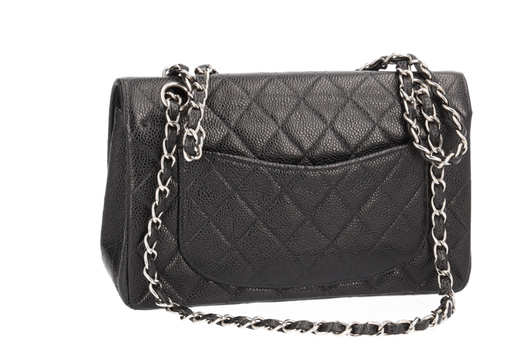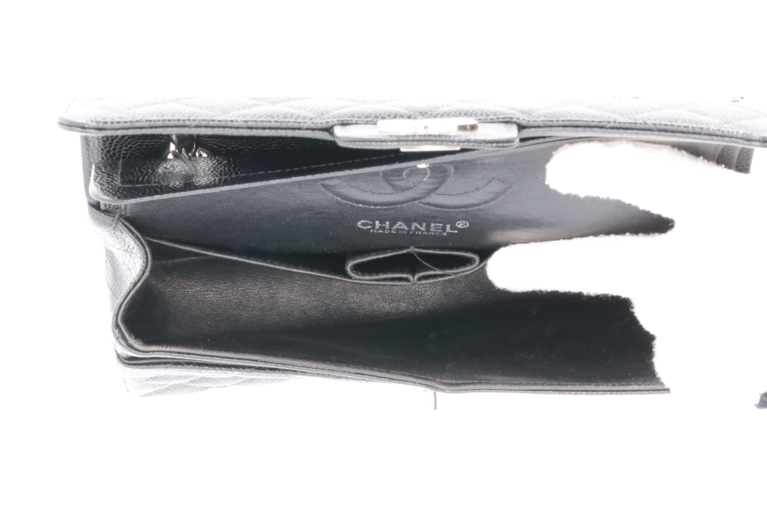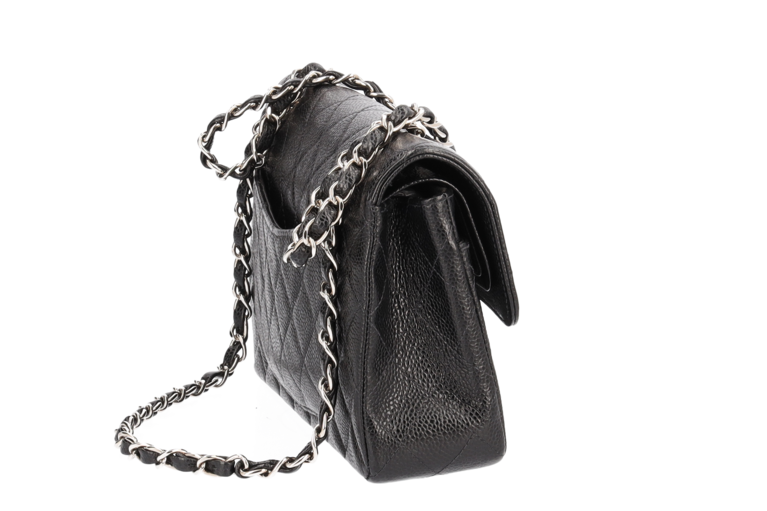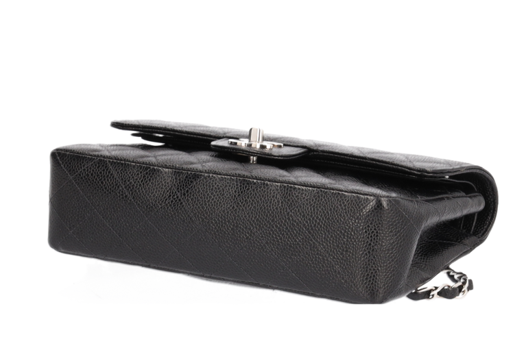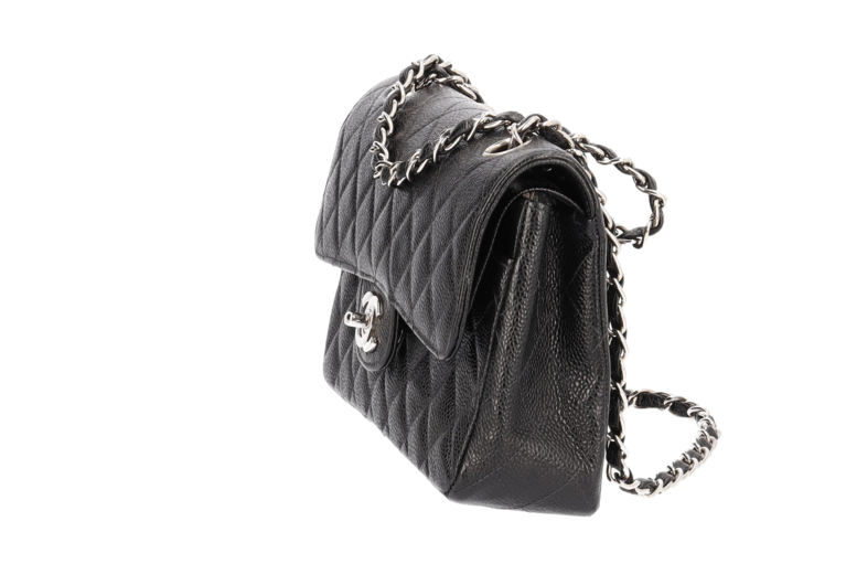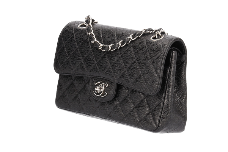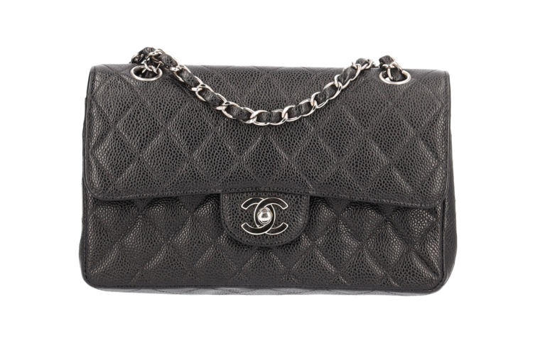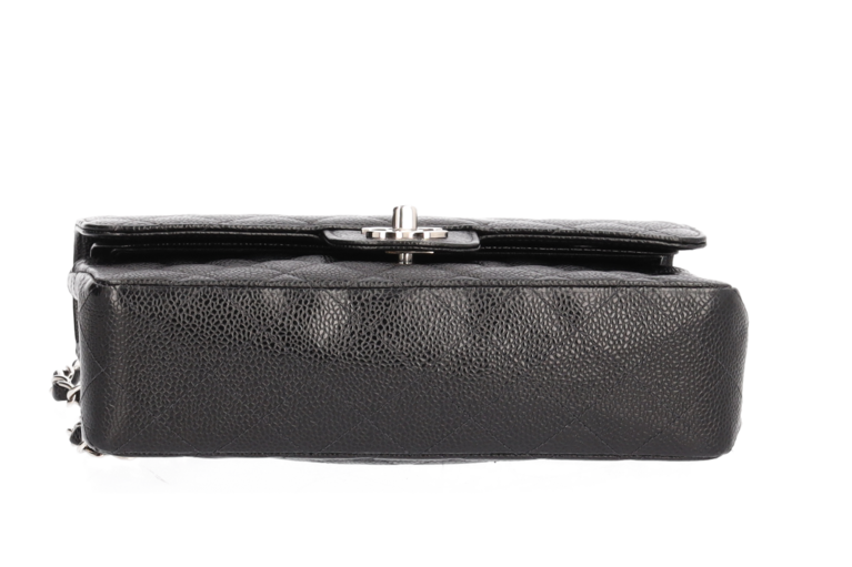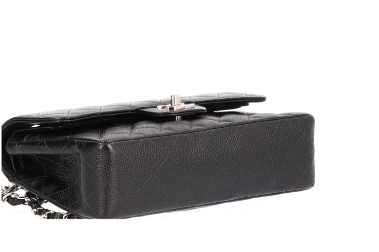 Chanel Small Classic Double Flap Chain Bag Ketten Schultertasche Schwarz Kaviarleder Silberfarbene Beschläge