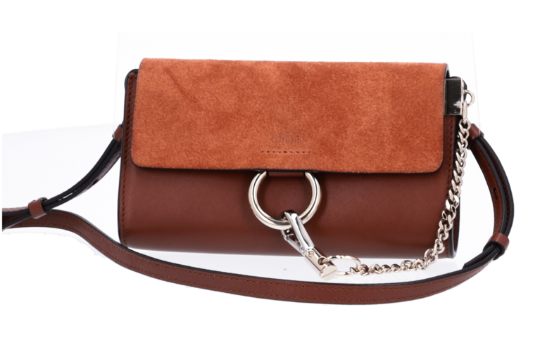Chloé Faye Chainwallet Umhängetasche Pochette Tabak Braun Kalbsleder und Veloursleder