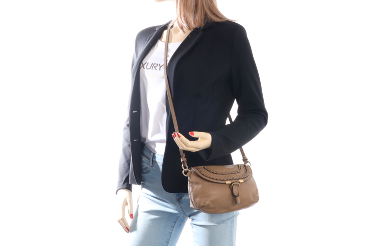 Chloé Marcie Pochette Taupe Leder mit geflochtener Ziernaht