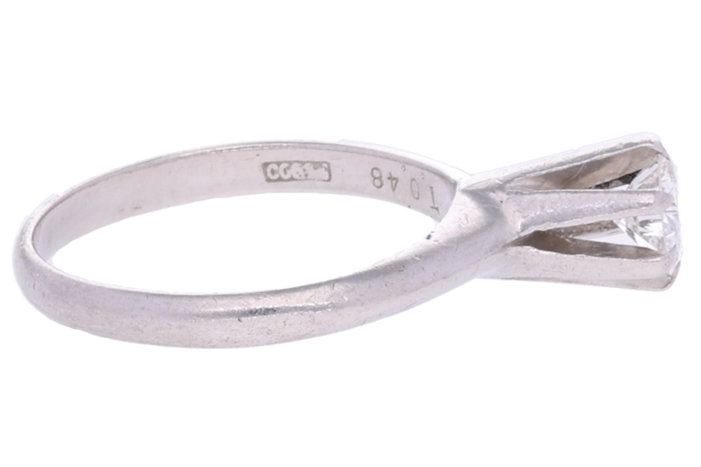 Diamant Solitär Ring 0.48ct Diamant in 900 Platin Ringschiene Gr. 53