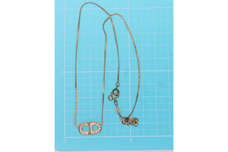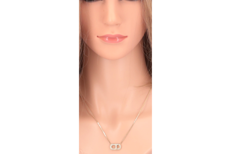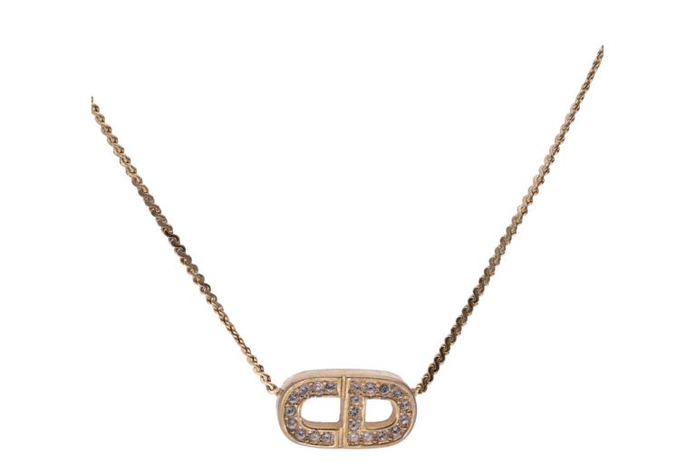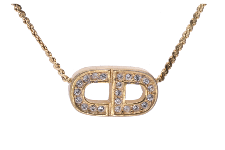 Dior Halskette goldfarbenes CD und Strasssteinchen