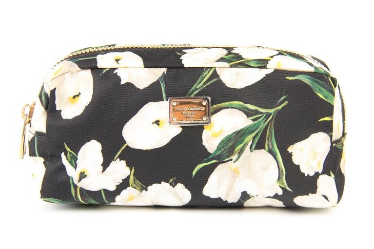 Dolce & Gabbana Kosmetiktäschchen Blumenmuster Schwarz, Weiss Textil