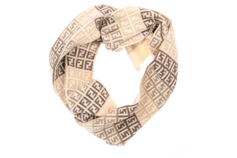 Fendi Schal mit Zucca Muster Braun Beige Elfenbein Wolle