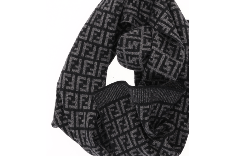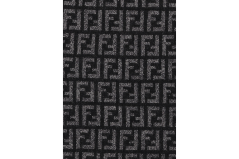 Fendi Schal mit Zucca Muster Grau Schwarz Wolle 180cm x 28cm