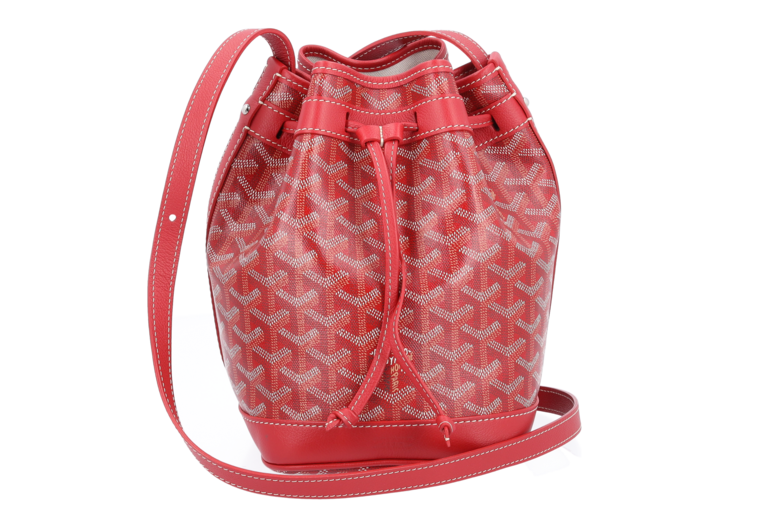 Der Goyard Sac Seau Flot Bucket PM in leuchtendem Rot vereint handwerkliche Raffinesse mit moderner Eleganz. Gefertigt aus dem ikonischen Goyardine-Canvas, besticht die Tasche durch ihr leichtes Gewicht und ihre robuste Struktur. Das charakteristische Muster mit handgemaltem Chevrondesign verleiht ihr einen unverwechselbaren Stil. Dank des cleveren Zugbandverschlusses und des flexiblen Schulterriemens eignet sie sich perfekt für den täglichen Gebrauch – ob in der Stadt, auf Reisen oder als stilvolles Accessoire zum Casual-Look. Ein zeitloses Stück französischer Luxuskunst.