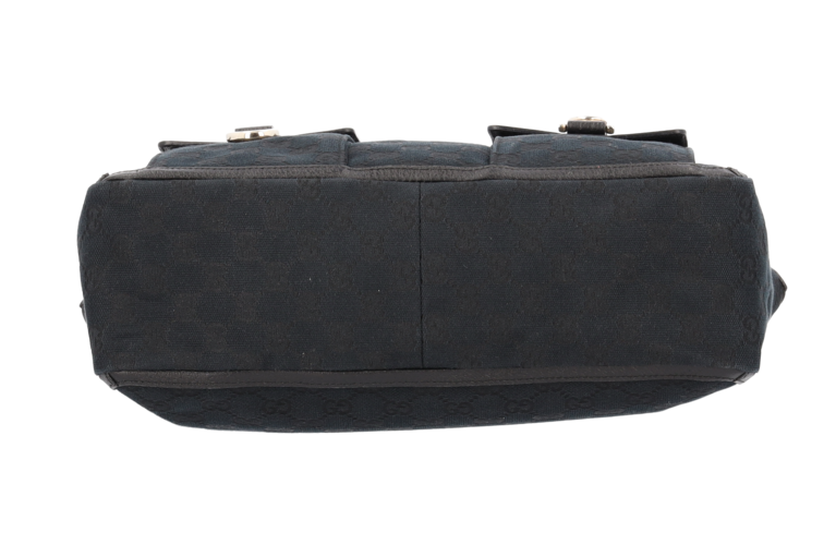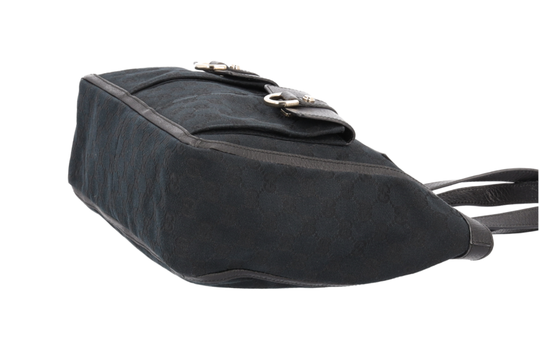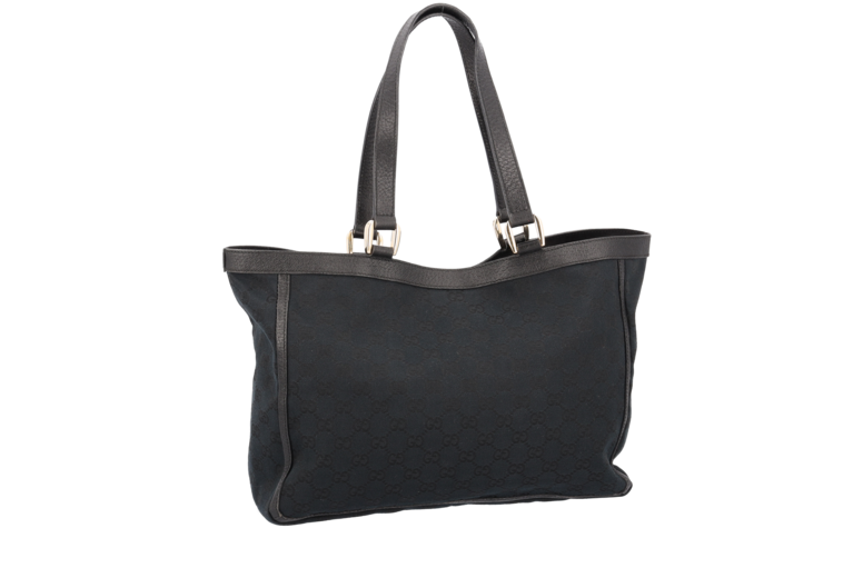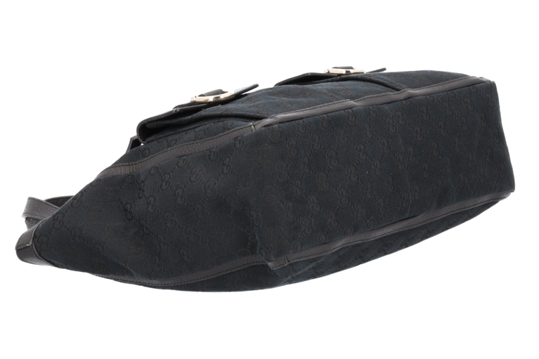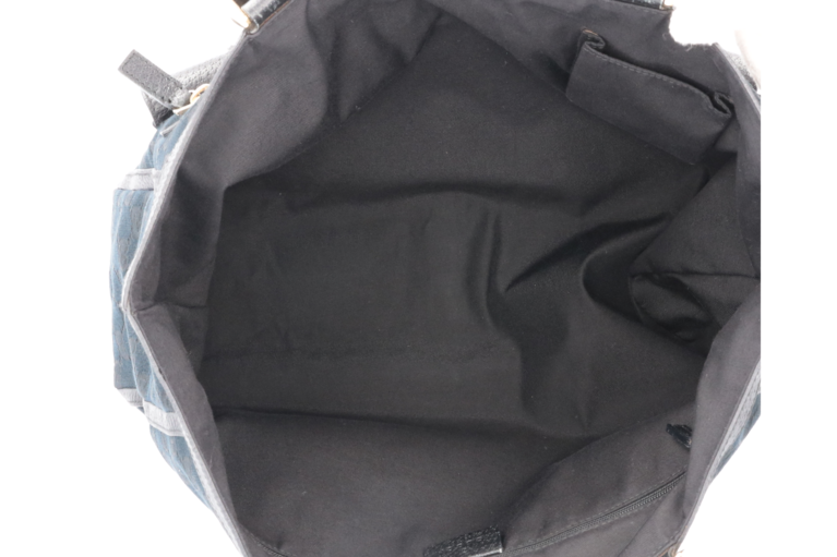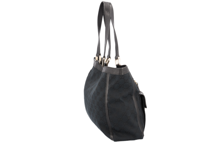 Gucci Abbey Shopper Schultertasche Canvas Navy Blau und Schwarz Leder 146247
