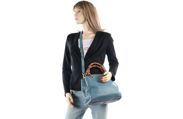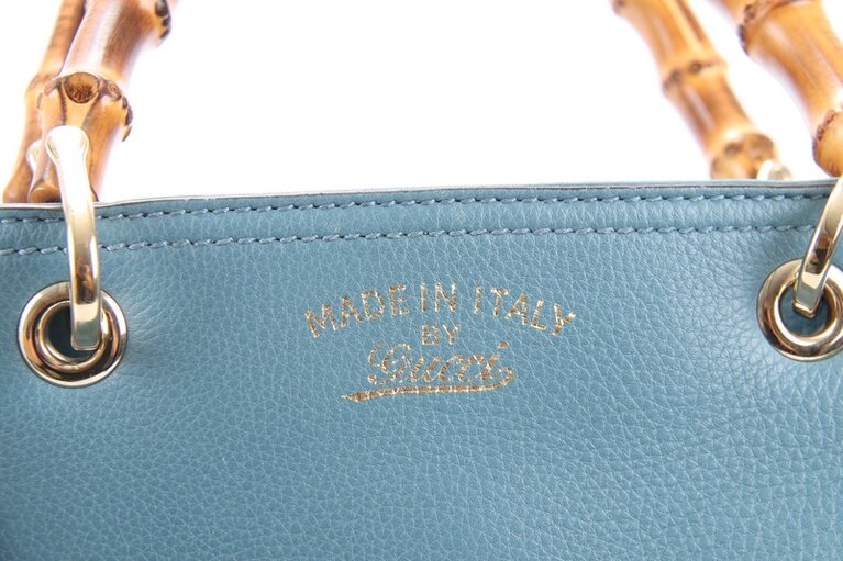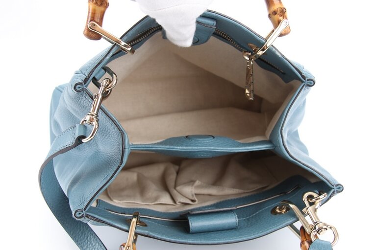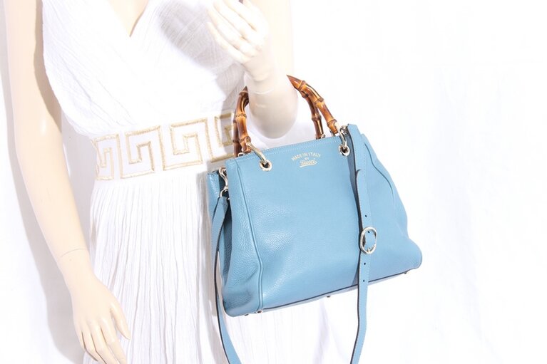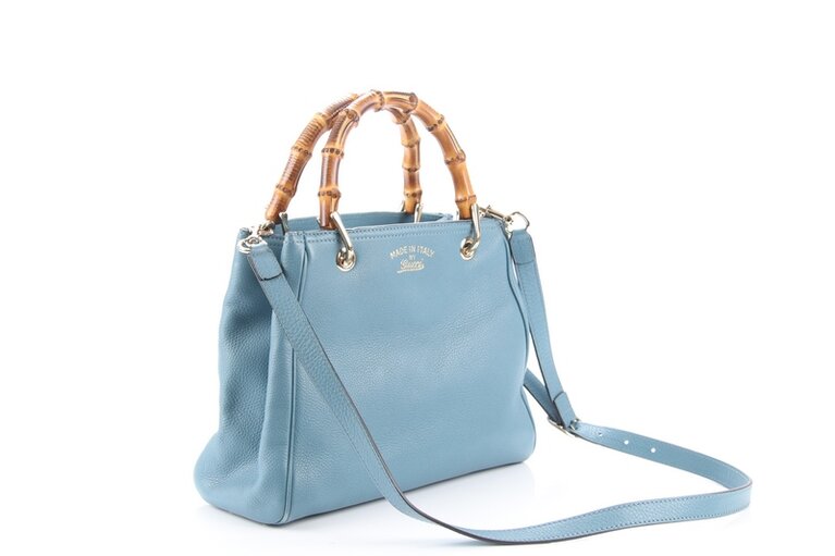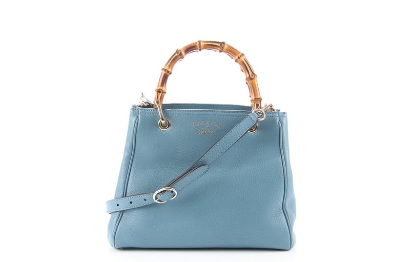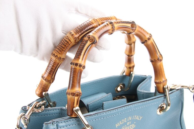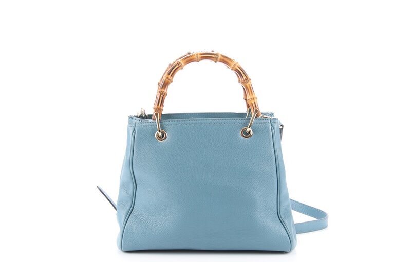 Gucci Bambus Small Two Way Bag Shopper Blau Leder 336032