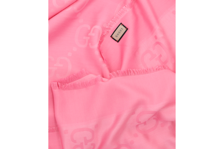 Dieser rosafarbene Schal aus Jacquard-Seide und Wollmischung ziert das ikonische GG-Logo der Marke – ein Design, das von den 1970er-Jahren inspiriert ist. Das GG-Logo, ein unverzichtbares Element der Gucci-Tradition, ist seit jeher fester Bestandteil der Kollektion und wird immer wieder modern und innovativ neu interpretiert.