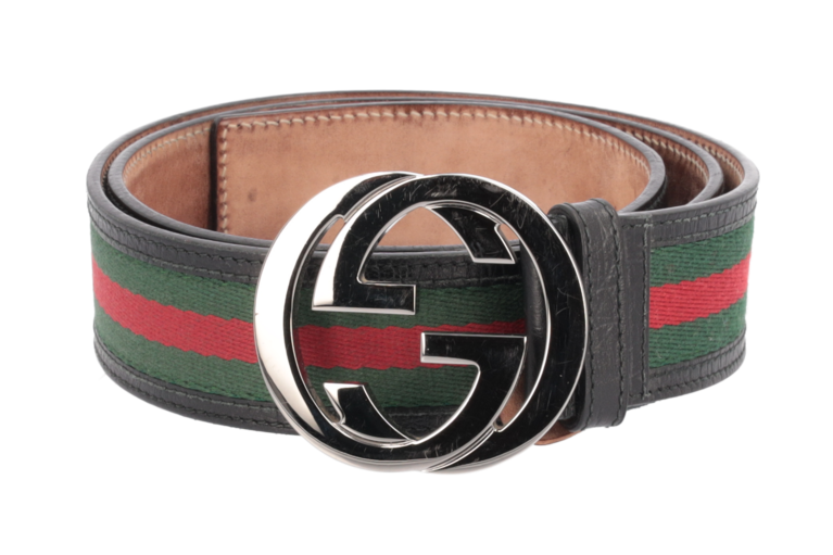 Gürtel aus der Shelly Linie von Gucci, mit den typischen Farben Grün und Rot.