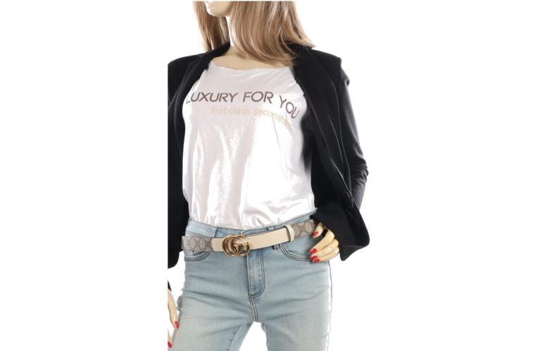 Casual eleganter Unisex Gürtel mit Guccis überdimensionalen Lettern als Schnalle.