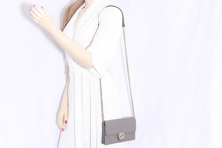 Gucci Interlocking GG Wallet on a chain Crossbodytasche Grau Dollar Kalbsleder 510314