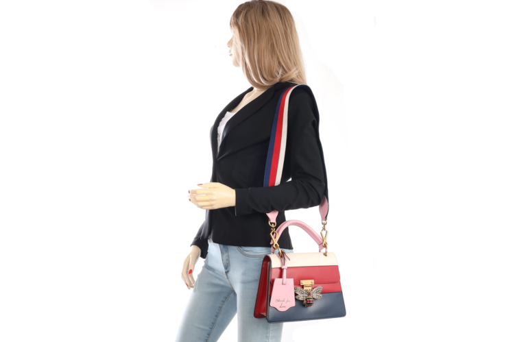 Gucci Queen Margaret Biene twoway tasche Rosa Weiss Rot Blau Leder 476541
