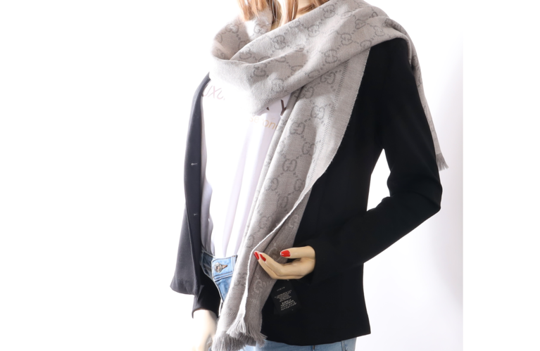 Gucci Schal Guccissima Grau Wolle Seide 08.338.986