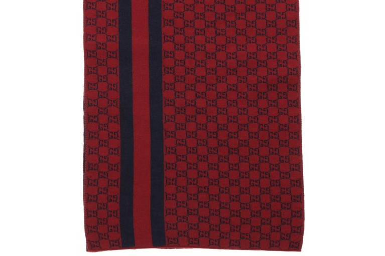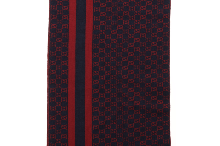 Gucci Schal Stola Logo Blau Rot Wolle 438253