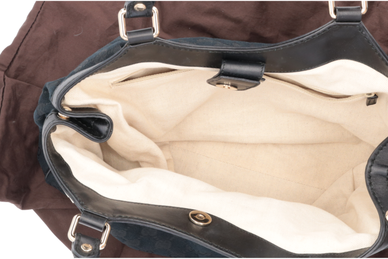 Wunderschöne Tasche aus Canvas mit Symbolen aus dem Hause Gucci und eleganten Ledersbesätzen. Diese Tasche kann sowohl in der Hand wie auch am Arm getragen werden.