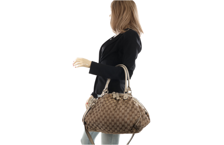 Gucci Sukey Two Way Bag Beige Braun Textil Weiss Leder 223974