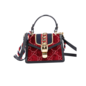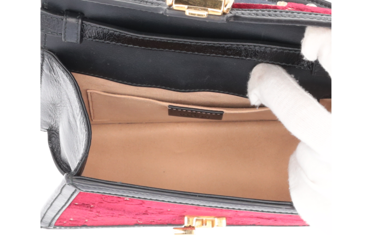 Gucci Sylvie Mini Tasche Schwarz Leder und Rot Samt mit zwei Riemen 470270