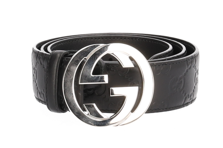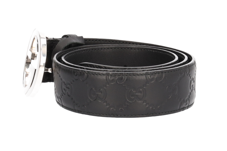 Gucci Unisex Gürtel Schwarz Signature Guccissima Leder Gr. 105 SHW 411924
