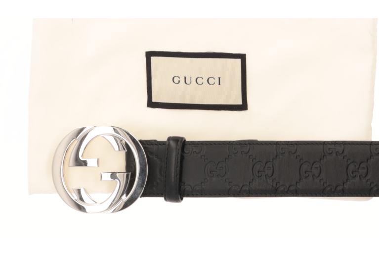 Casual eleganter Unisex Gürtel mit Guccis überdimensionalen Lettern als Schnalle.