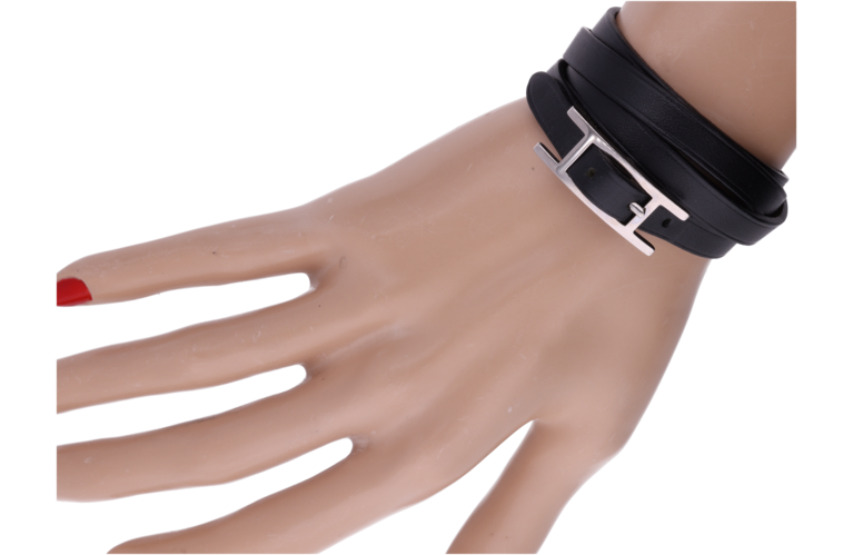 Hermès Behapi Triple Lederarmband Schwarz Silberschnalle