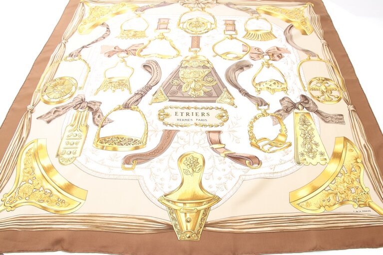 Hermès Carré Etriers Braun 90cm x 90cm Seide