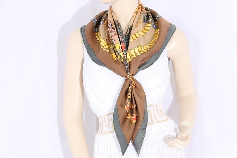 Hermès Carré`s können auf unterschiedliche Varianten gebunden und getragen werden.