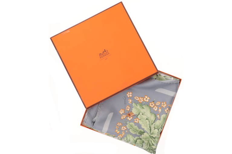 Hermès Carré La Prairie Grau Bunt 90cm x 90cm Seide